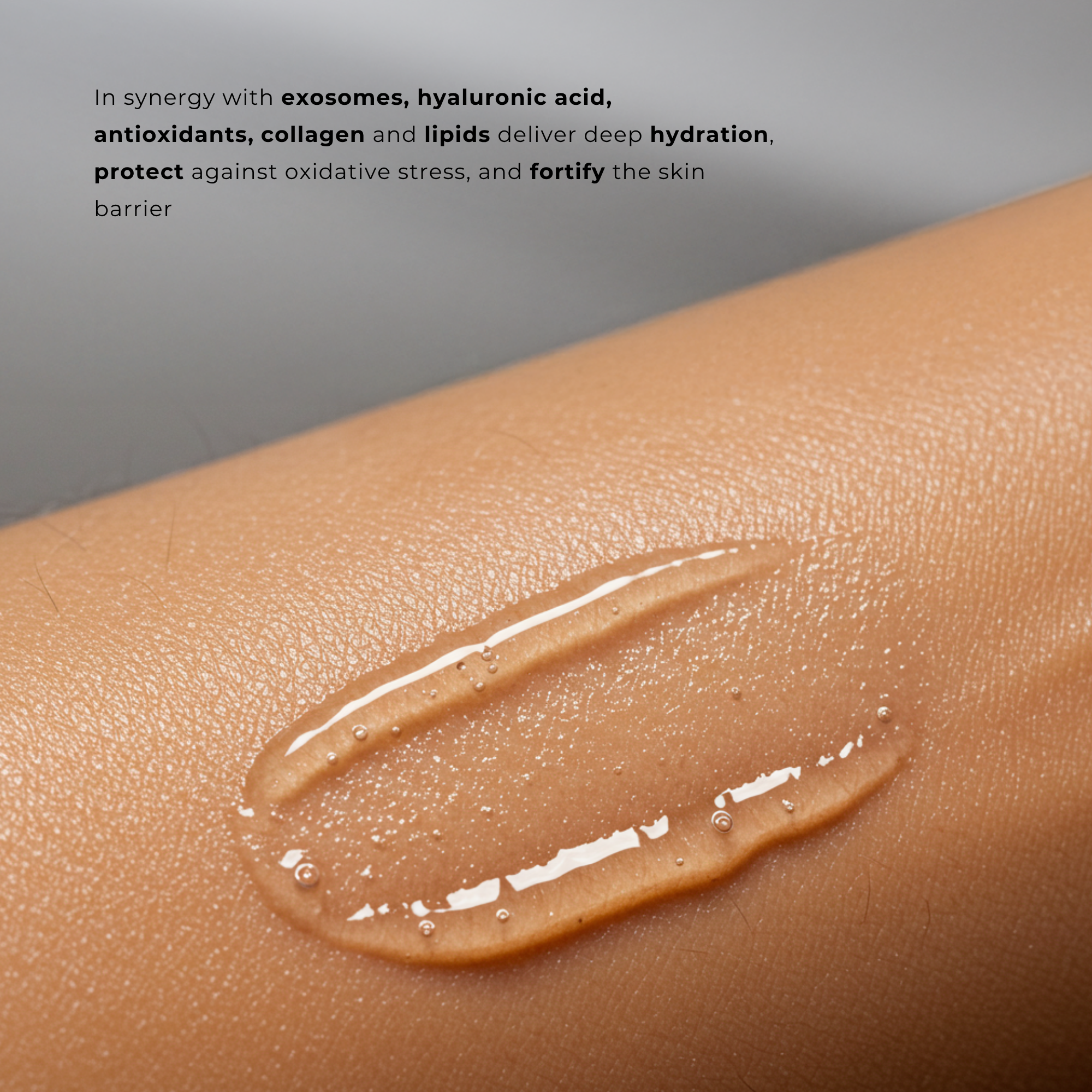 In skincare, these microscopic messengers help support smoother-looking texture, renewed radiance, and a healthier, more resilient appearance. Our proprietary Exopure Complex pairs these exosomes with advanced peptides and hydrating agents, creating a high-performance ritual that works in harmony with your skin.