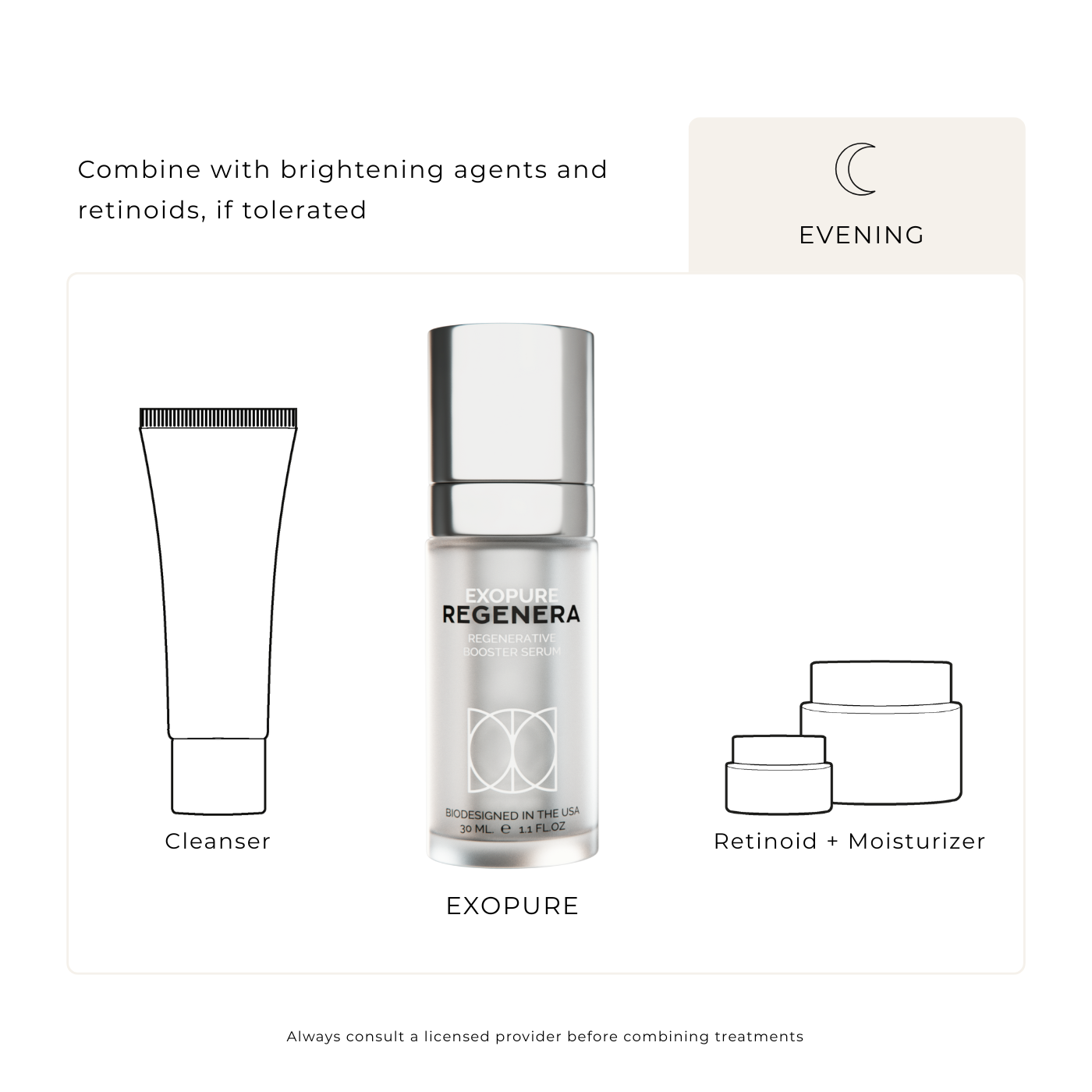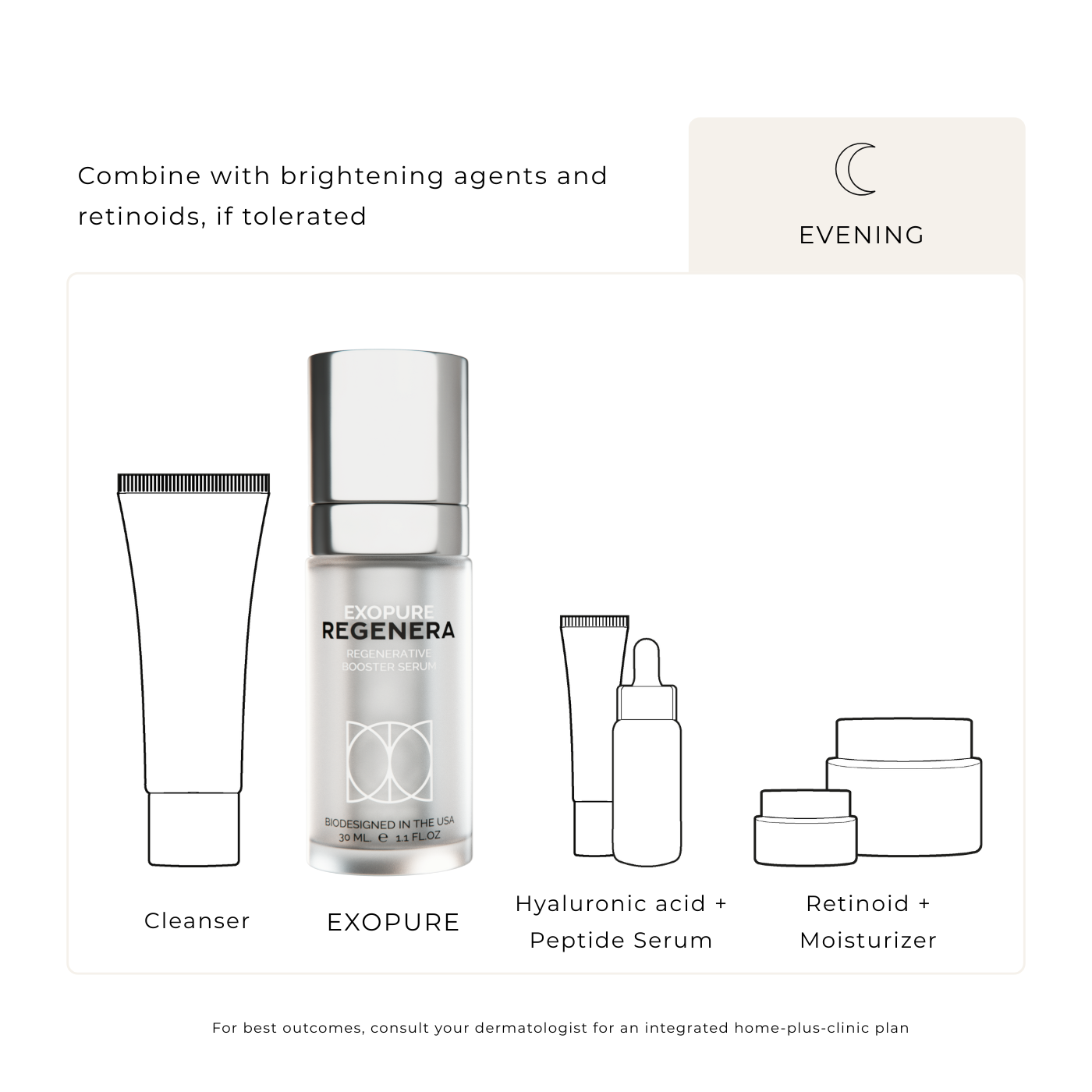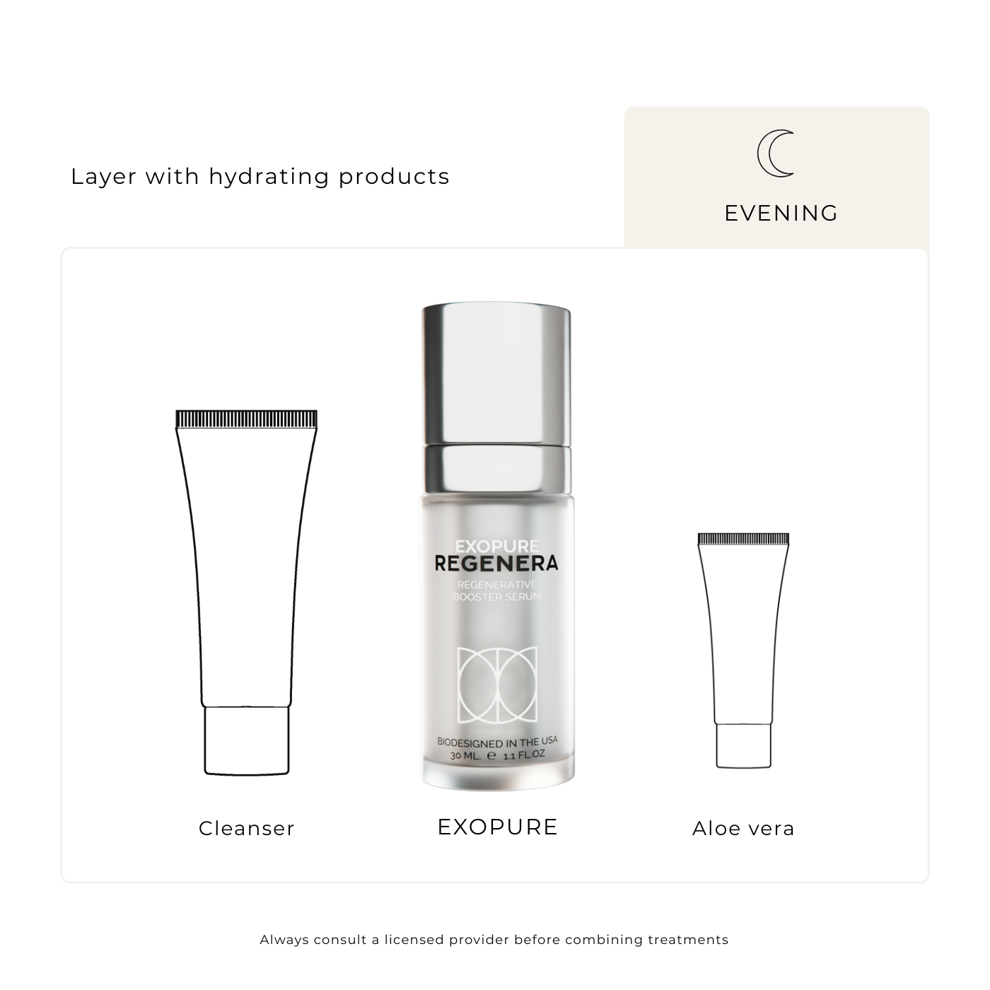 These guidelines are for cosmetic use only. Regenera Exopure™ Booster Serum is not intended to diagnose, treat, cure, or prevent any disease. Always consult a licensed provider for personalized medical or dermatological advice.