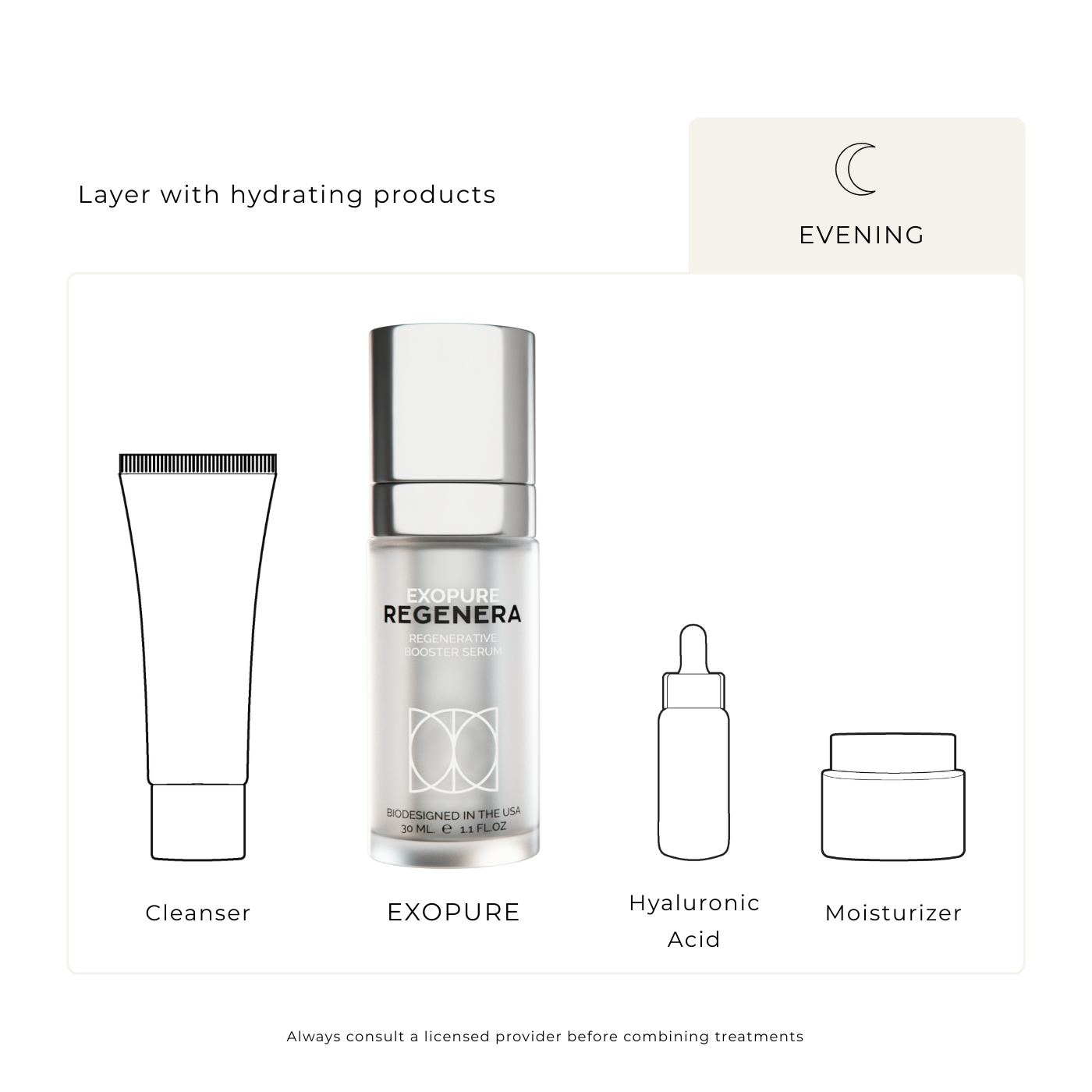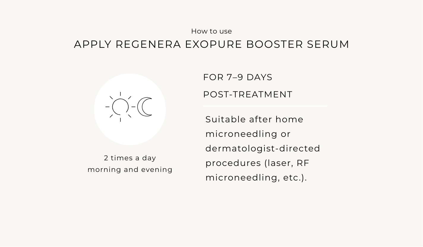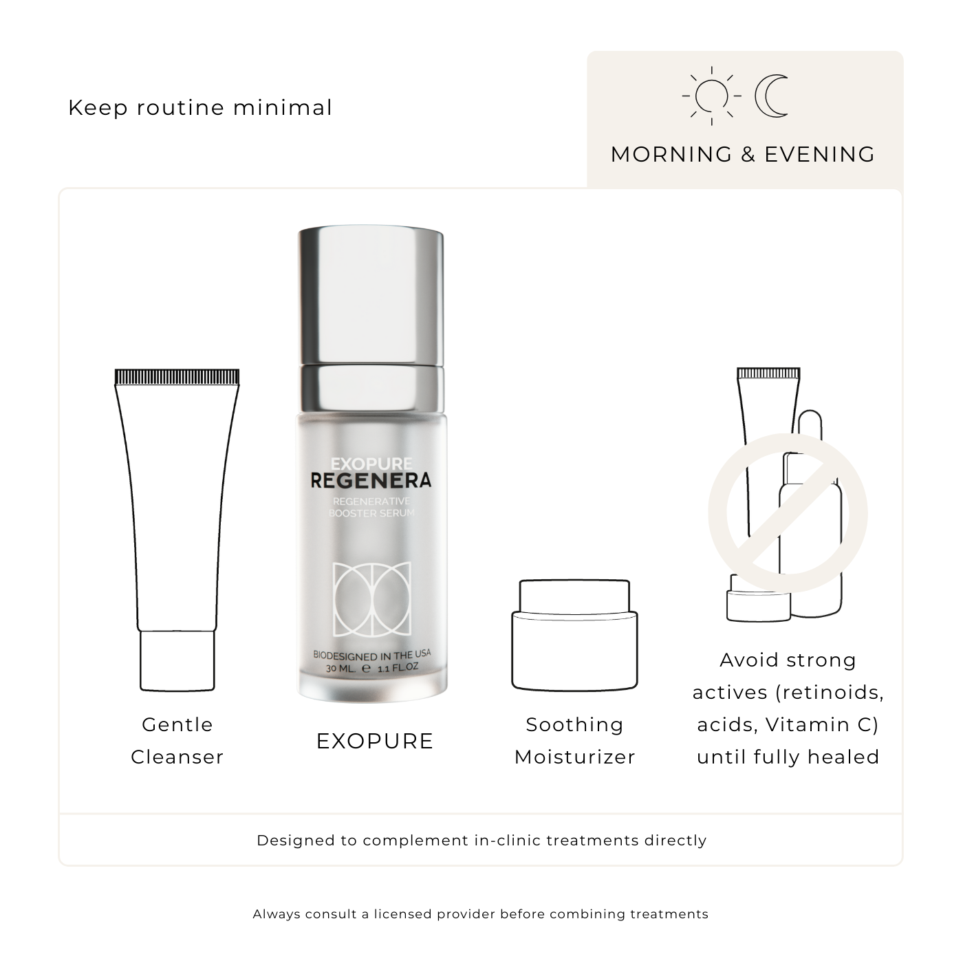 These guidelines are for cosmetic use only. Regenera Exopure™ Booster Serum is not intended to diagnose, treat, cure, or prevent any disease. Always consult a licensed provider for personalized medical or dermatological advice.